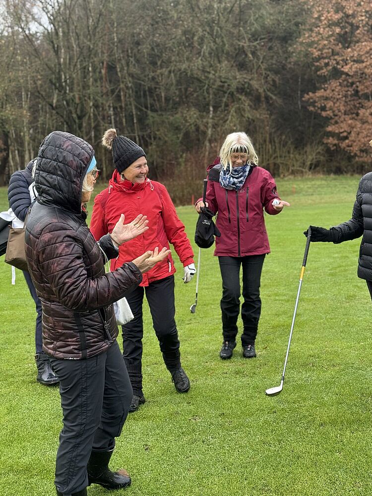 Wir sind um 11.00 Uhr zu einem 9 Loch Turnier gestartet, das dann wetterbedingt in einem Spaziergang mit gelegentlichem Einsatz eines Schlägers endete.