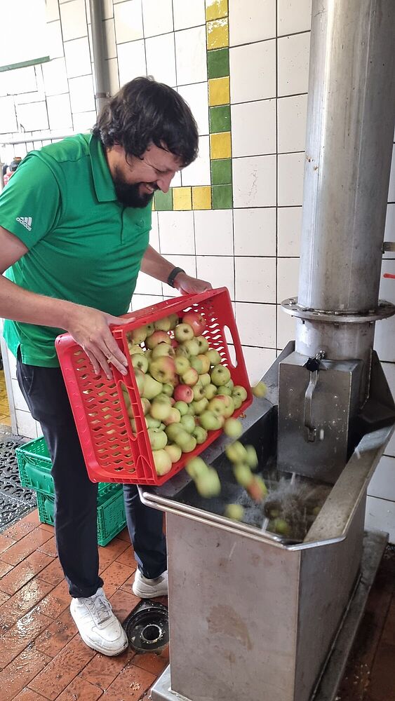 Mit rund 320 Litern Saft haben wir in diesem Jahr sogar eine neue Rekordmenge erreicht! Die erste Geschmacksprobe vor Ort bestätigte: Köstlich wie nie zuvor.
