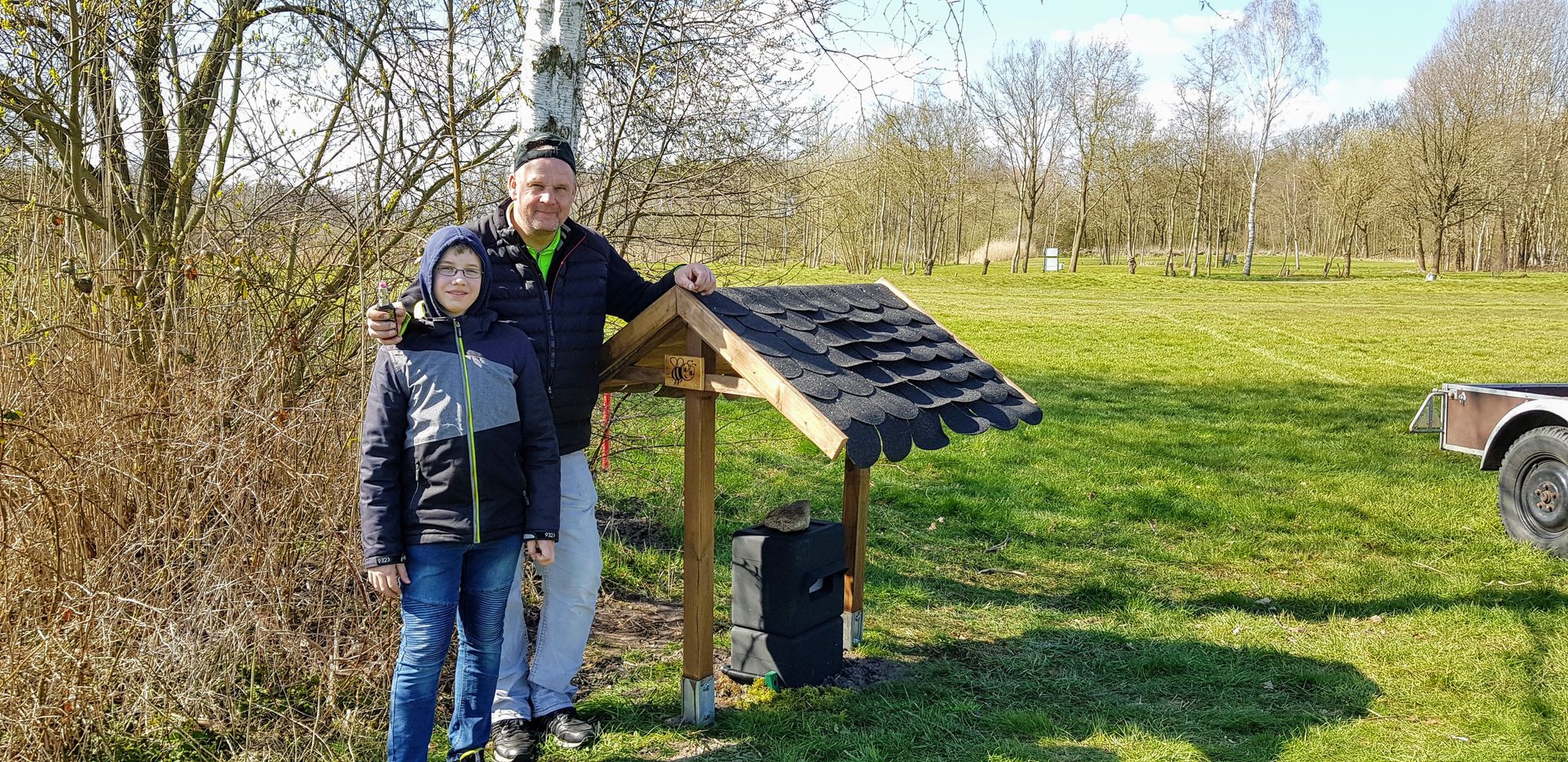 Einfach fantastisch ist es auch immer wieder, wenn Ihr uns unterstützt. Jörg Meiners hat fleißig unsere großen neuen Schilder für die Driving Range geklebt. In zwei 2er Trupps haben Levi, Jörg Scharenberg, Sven Wutschke und Michael Ohlms zwei Hummelkästen inklusive Unterstand aufgebaut. Ein ausführlicher Bericht zu dieser tollen Maßnahme folgt in Kürze.