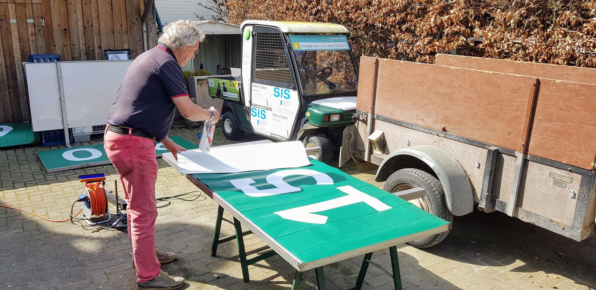 Auch unser Hausmeister Team Dirk und Rainer unterstützt von Andreas sind mächtig am Anpacken. Wir haben neue Bänke und Papierkörbe auf der Range aufgebaut. Ein zweiter Schlägerwäsche ist auch noch dazugekommen. Zur Sicherheit der Spaziergänger, die immer mehr die öffentliche Wege durch unsere wunderschöne Anlage nutzen, haben wir Hinweisschilder aufgebaut. Auf dem 9-Loch Platz und auf den ersten 9 Löchern haben wir schon erfolgreich die neuen im Boden eingelassenen BrokenTee Behälter verbaut, diese haben wir nun auch auf den Löchern 10 - 18 eingebaut.