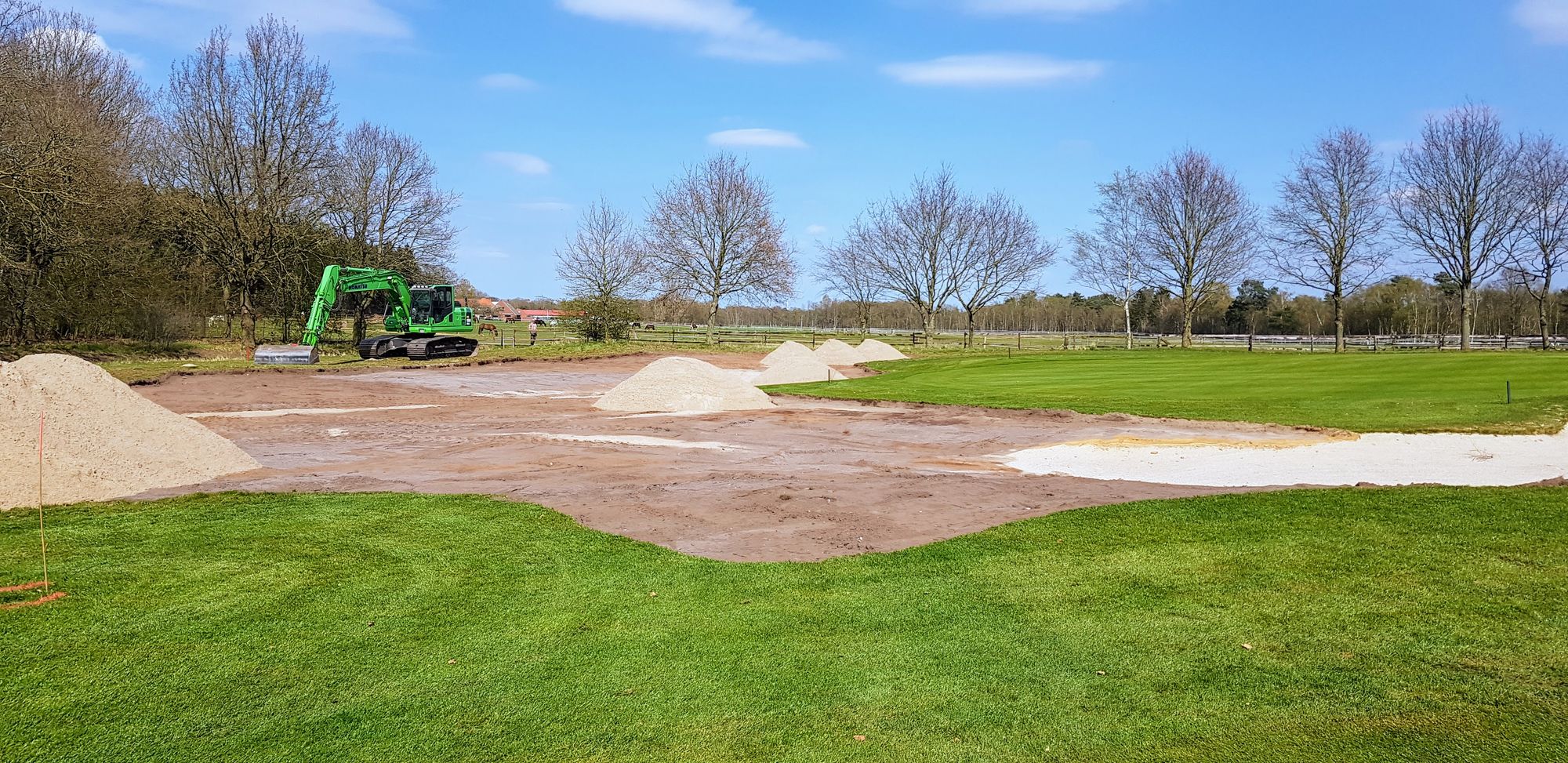 Unsere Bunkerrenovation schreitet weiter gut voran, die Arbeiten auf den ersten 9 Löchern sind mittlerweile fast abgeschlossen. Am Dienstag nach Ostern werden die ersten Flächen eingesät. Der Bunkersand kommt am Ende der Woche und wird dann in die neuen Bunker verfüllt. Schaut doch mal bei unserem Bautagebuch vorbei. Dort sind die einzelnen Baufortschritte im Detail beschrieben.