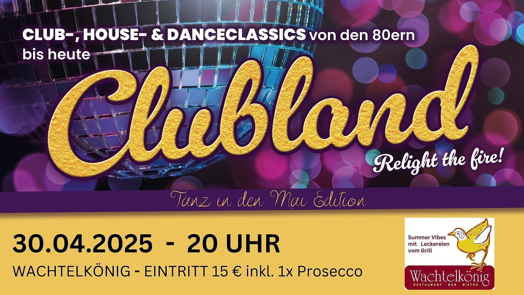 Kommt vorbei, tanzt mit uns in den Mai und erlebt einen unvergesslichen Abend im Wachtelkönig!
