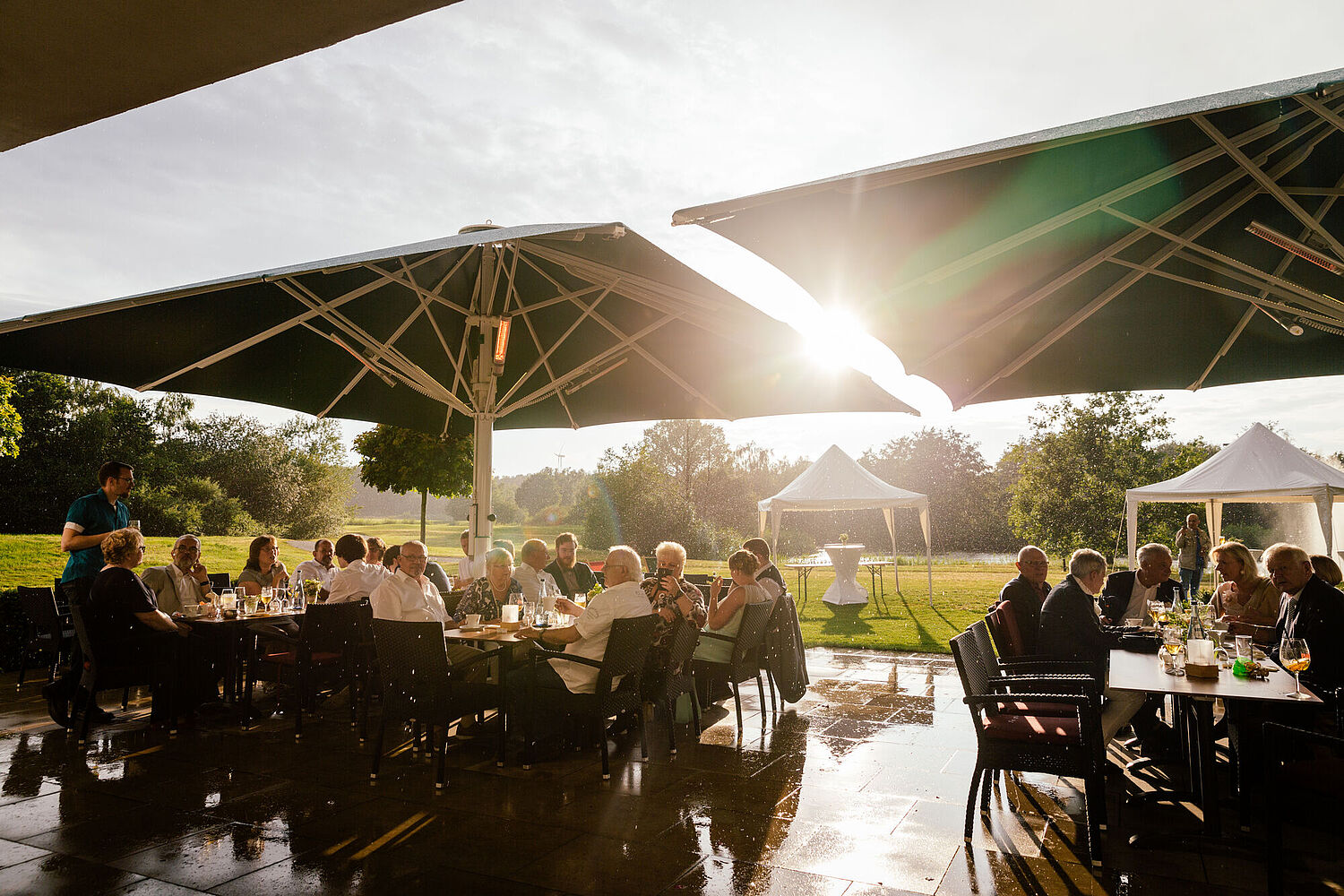 Sie möchten gerne in der wunderschönen Umgebung des Golfplatzes Ihre Feierlichkeit oder Ihr Event austragen? Wir bieten Ihnen unseren Service bis 150 Personen für Hochzeiten, Geburtstage, Konfirmationen oder andere Anlässe sehr gerne an. Von der Menüauswahl über die Dekoration bis zur musikalischen Begleitung organisieren wir Ihnen alles.