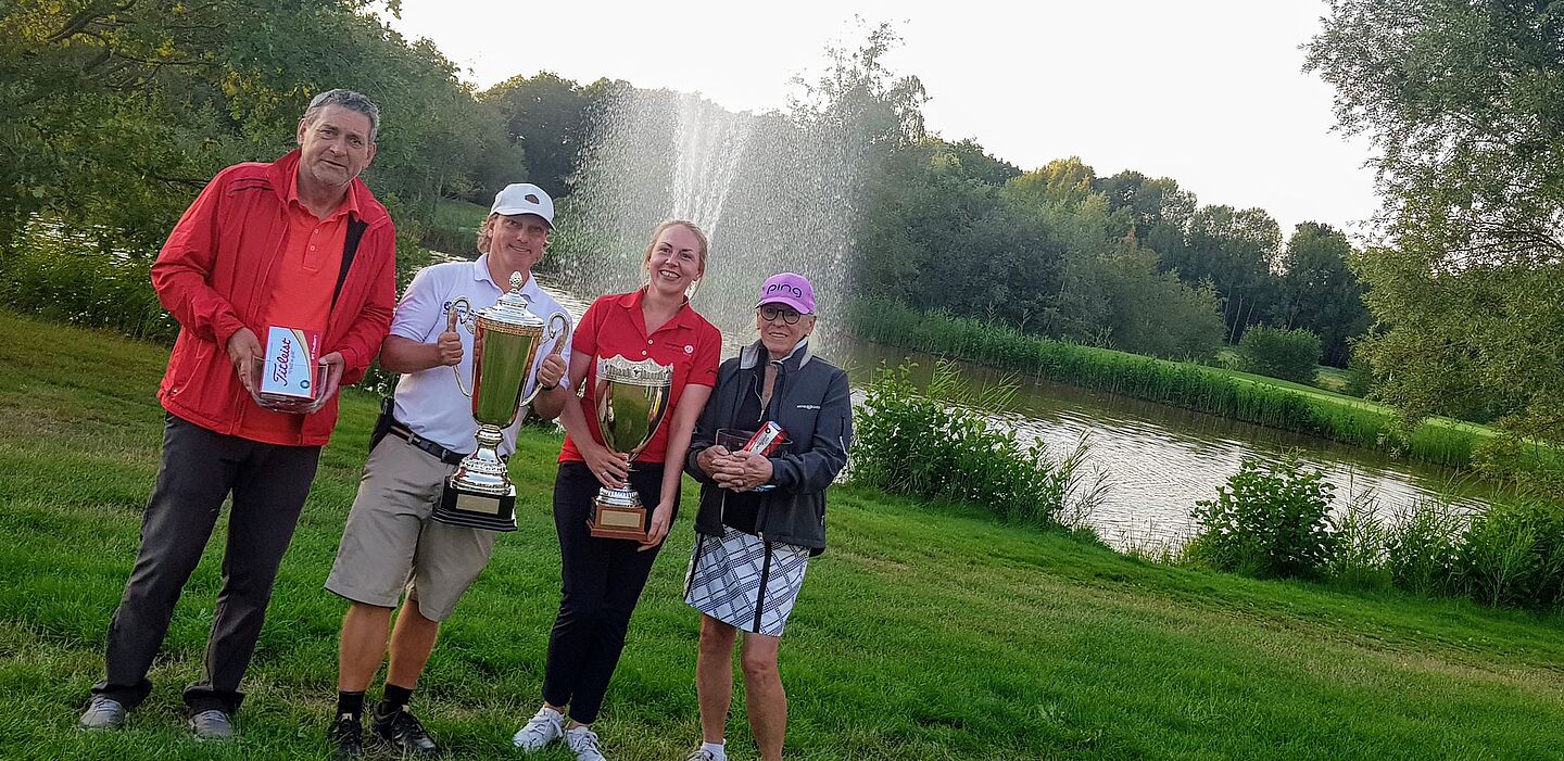 Souveräne Clubmeisterin bei den Damen wurde Christel Läkamp, die mit insgesamt 33 Bruttopunkten und acht Punkten Vorsprung den Titel gewinnen konnte. Bei den Herren wurde es dann richtig dramatisch. Nach dem alle Spieler drin waren standen auf einmal drei Spieler mit jeweils 42 Bruttopunkten auf Platz eins. Matthias Ihde, Herbert Nalbach und Arnd Brüning. Also mussten die drei Spieler nochmal auf die Bahn 1 und im "Sudden Death" Modus den Sieger küren. Das gelang dann direkt am ersten Loch. Matthias Ihde spielte eine souveräne fünf, Herbert Nalbach und Arnd Brüning mussten jeweils die sechs notieren, damit stand Matthias Ihde als Clubmeister bei den Herren auf dem 9-Loch Platz fest.