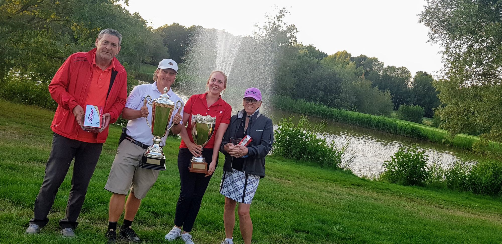 Eine spannende Meisterschaft mit vielen großartigen Ergebnissen und Eindrücken ging am Sonntagabend mit der Siegerehrung zu Ende. Ein herzlicher Dank geht an alle Helfer. Manfred Maruhn der das Livescoring immer aktuell hielt, Mark Weidlich der sowohl auf dem Platz als auch beim Livescoring aktiv war. Andreas Kauler, der uns bei der Spielleitung unterstützt hat und das Scoreboard beim Leaderflight der Damen getragen hat. Boris Bollmann, ebenfalls Scoreboard, beim Leaderflight der Herren. Angelika und Joachim Römer und Ursula und Klaus Schneider die den Getränkestand am 18ten Grün betreut haben und natürlich an Joachim Martens der an allen drei Tagen als Spielleitung auf dem Platz aktiv war.