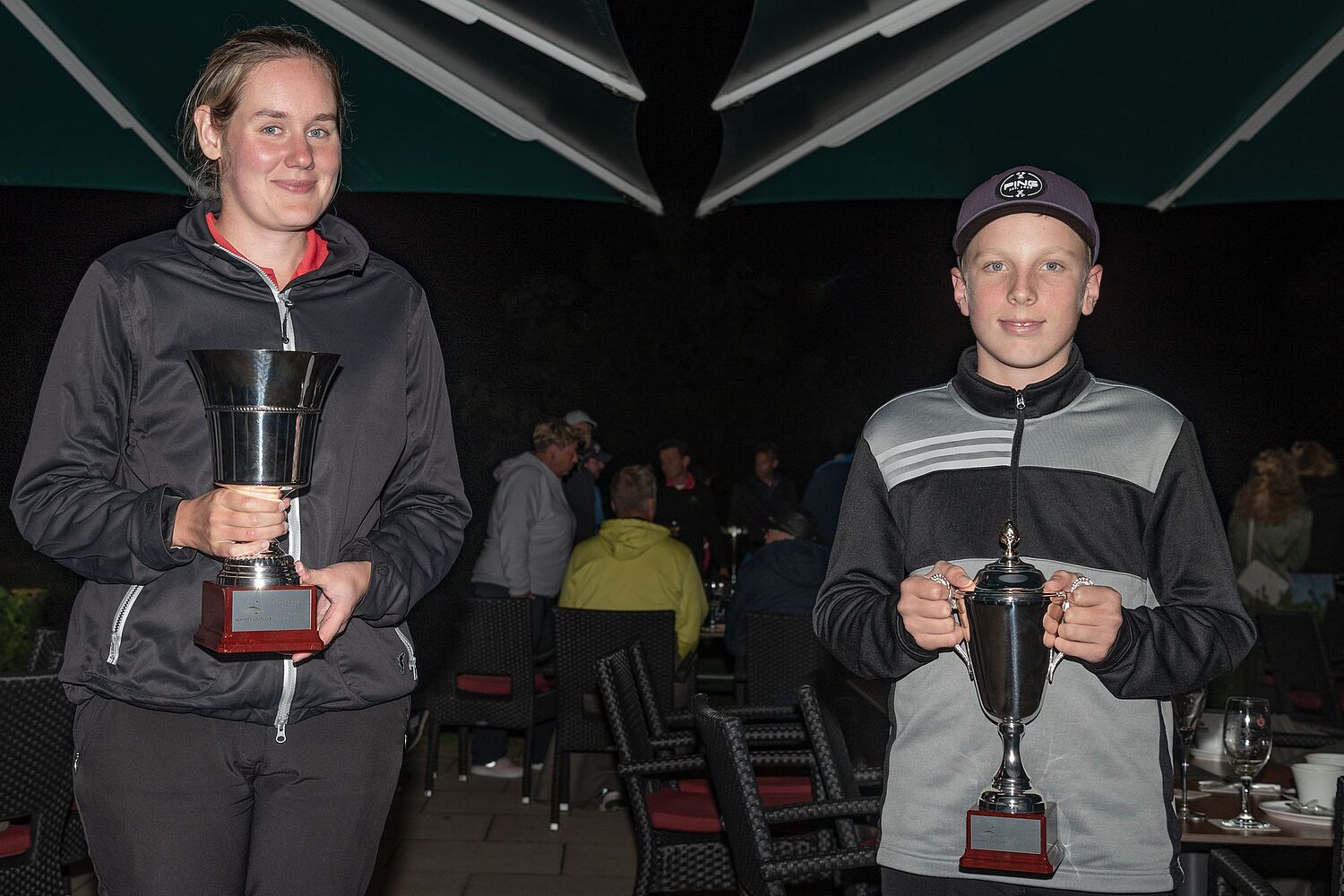 Auf dem 9-Loch Platz gab es in der Herrenwertung nach 2019 das zweite Stechen in Folge um den Sieg. Von Platz drei und vier nach der ersten Runde konnten sich Felix Körner und Hartwig Schepker am Finaltag mit insgesamt 55 Bruttopunkten an die Spitze des Feldes schieben. Im Stechen an Bahn 1 konnte sich dann Felix mit einer 5 gegen Hartwig, der eine 6 spielte, durchsetzen. Herzlichen Glückwunsch an Felix, der sich mit seinen 12 Jahren zum jüngsten Clubmeister in der Geschichte des Achimer Golfclubs küren konnte.