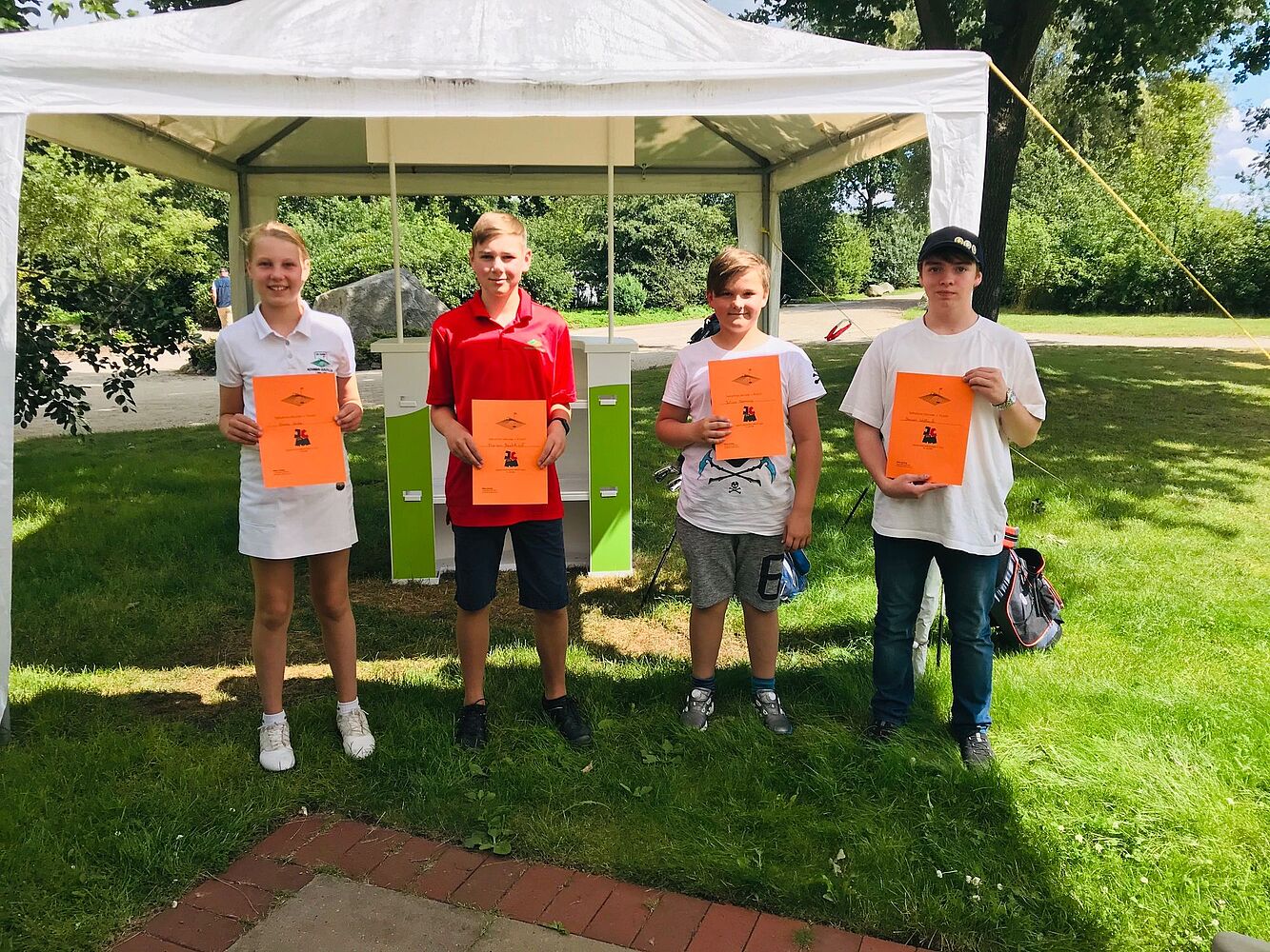 Bei den Jugendlichen führt Mark Weidlich nach einer soliden Runde mit 25 Bruttopunkten. In der Nettowertung ist Felix Körner auf dem ersten Platz mit 34 Nettopunkten. Morgen starten dann auch noch unsere jüngsten Mitglieder auf dem 9-Loch Platz.