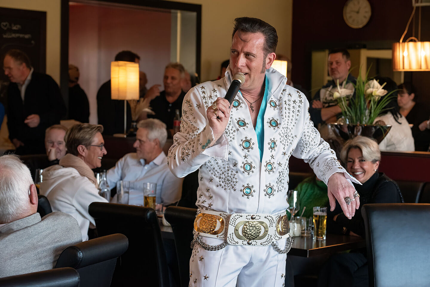 Den musikalischen Rahmen des Empfangs gestaltete Matthias Monka, der die Gäste gekonnt auf das Jahr 2024 einstimmte. Der Höhepunkt des Empfangs war die Showeinlage des Elvis Presley Doubles.