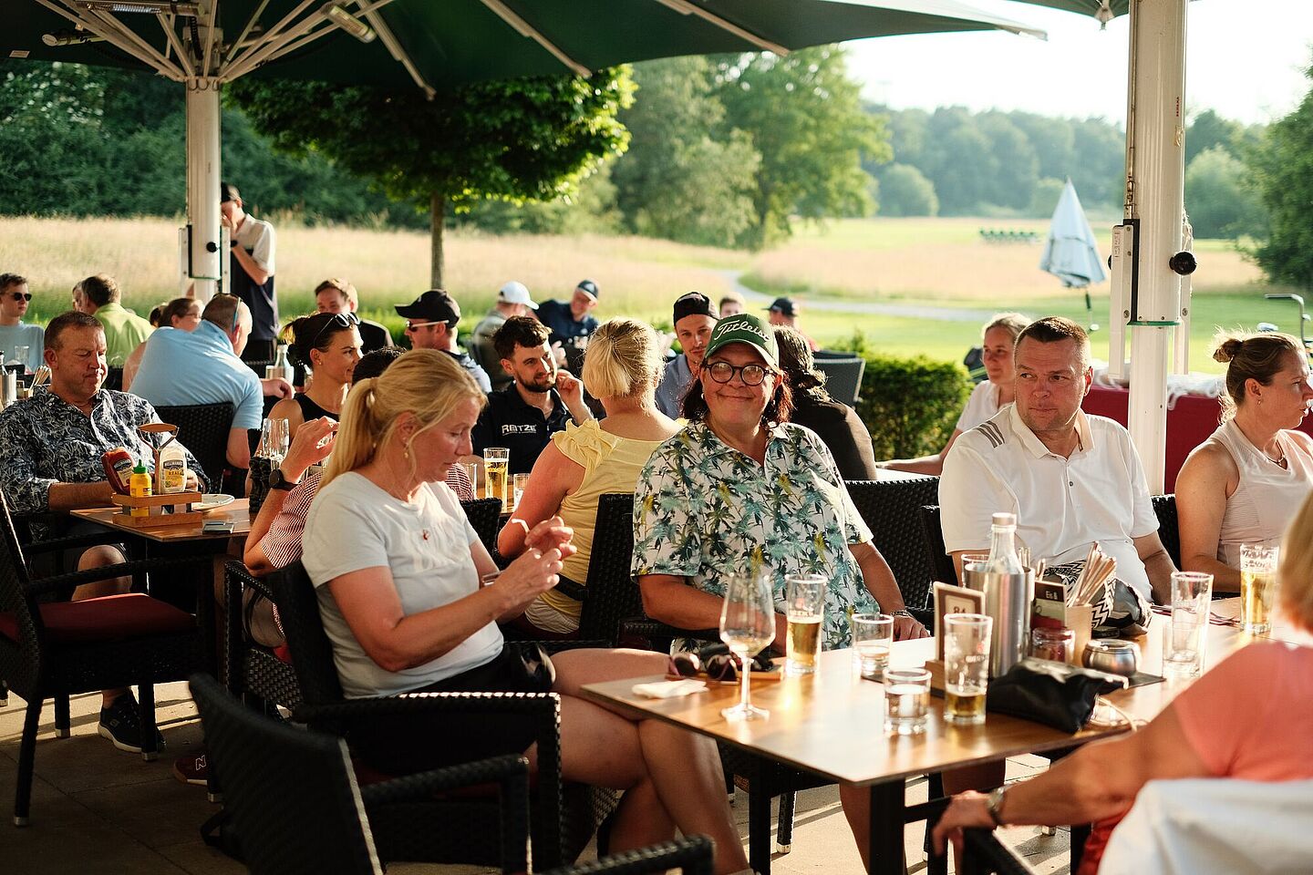 Nach einer anstrengenden Runde wartete auf der Clubhausterrasse die wohlverdiente Belohnung: 100 Liter Freibier und -alster, jede Menge Wasser zur Abkühlung und lässige Beats von DJ Frank!e, die für entspannte Stimmung sorgten. So konnten sich alle wieder ein wenig erholen und gemeinsam den Turniertag ausklingen lassen.